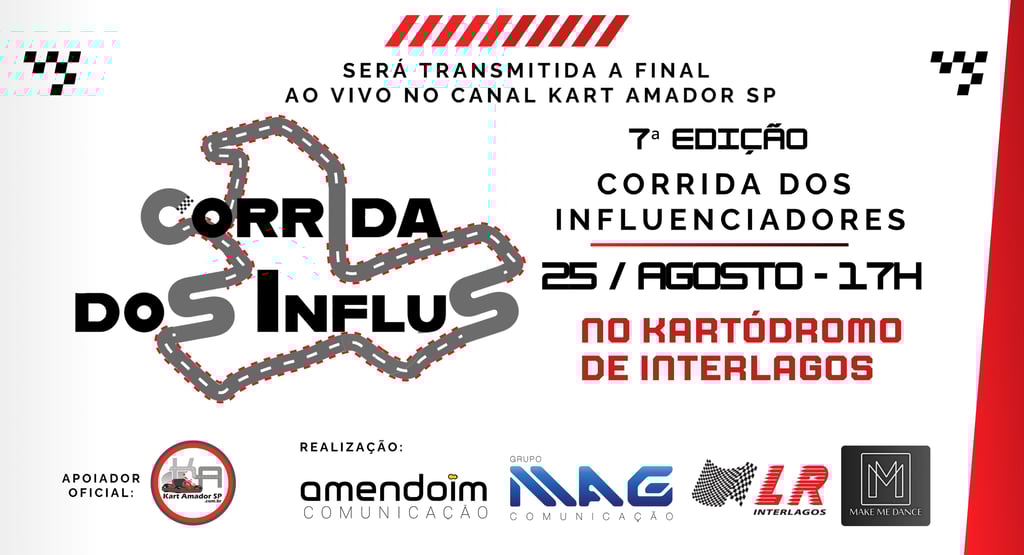 São Paulo, 23 de agosto de 2025 — Falta pouco para um dos eventos mais aguardados do ano. Na próxima segunda-feira, dia 25 de agosto, a partir das 17h, o Kartódromo de Interlagos será o palco da 7ª edição da Corrida dos Influenciadores — encontro que combina esporte, música, solidariedade e a energia dos maiores criadores de conteúdo da atualidade.